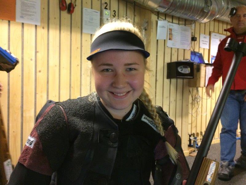 Maria prikket inn 350 med 20 innerblink, det gir ledelse i ER. I samme lag skjøt Silje Jeanett Holter fra Moss og Våler 349 med 20 innerblink. Det gir så langt en 3. plass, en inneblink bak May Helene Bengtson fra Nittedal | |