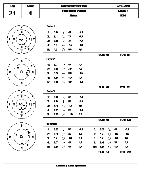 Klikk på navnet for skiva til skytteren, klikk på plassering for resultatlista.